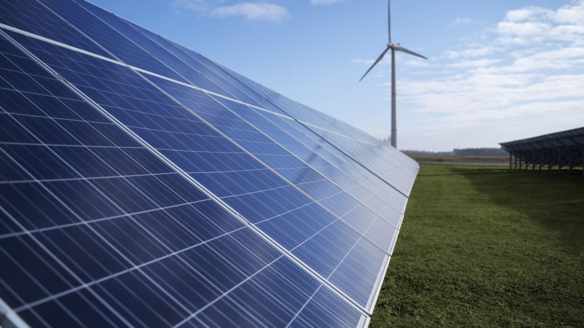 Panneaux photovoltaïques et éolienne © Photo de freepik